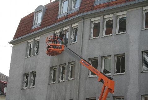 Verschiedene Fotos von unseren Glasreinigungsarbeiten mit Steiger